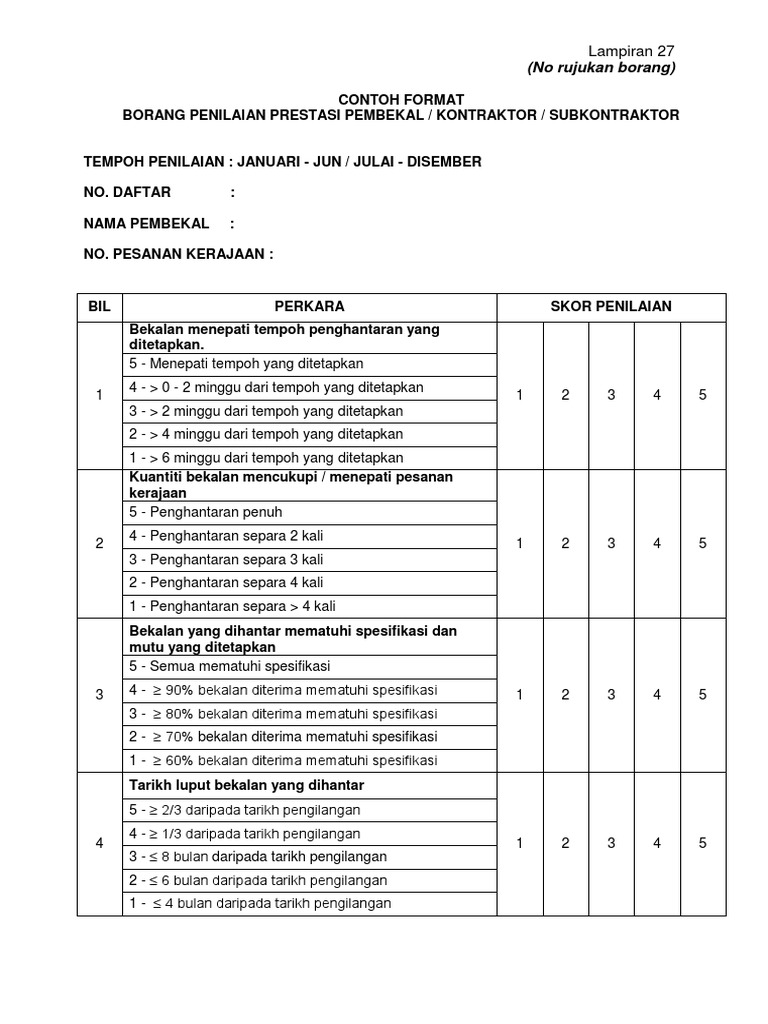 Lampiran 27 Borang Penilaian Prestasi Pembekal Pdf